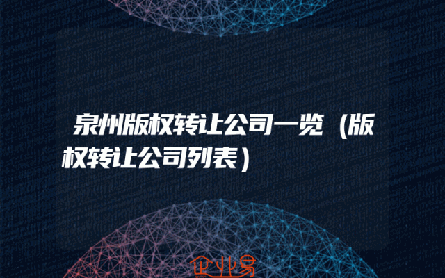 - 泉州版权转让公司一览(版权转让公司列表)一、版权转让公司的概述在泉州这座充满活力和创新精神的城市里,版权转让公司作为知识产权领域的重要一环,扮演着至关重要的角色。这些公司致力于保护创作者的知识产权,提供版权转让、登记、咨询等一站式服务。以下