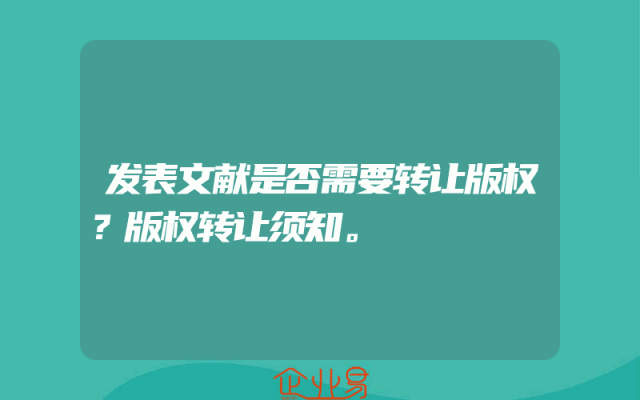 - 发表文献是否需要转让版权?版权转让须知一、文献发表与版权概述在学术领域,文献的发表是知识传播和学术进步的重要途径。随着知识产权意识的提高,版权问题日益受到关注。那么,在发表文献时,是否需要转让版权?这需要根据具体情况和法律法规来具体分析。二