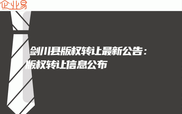 - 剑川县版权转让最新公告:版权转让信息公布一、版权转让动态更新近日,剑川县知识产权局发布了一则重要的版权转让公告,公告详细公布了最新的版权转让信息。随着科技的不断发展,知识产权保护日益受到重视,剑川县作为文化创意产业的重要基地,其版权转让市场