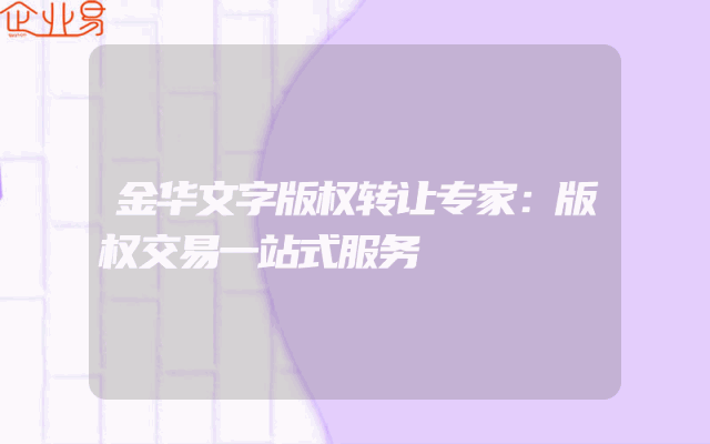 - 金华文字版权转让专家:版权交易一站式服务一、引言随着知识产权保护意识的加强,版权转让和交易成为了越来越多创作者和企业关注的焦点。金华作为文化名城,涌现了一批文字版权转让专家,他们致力于提供版权交易一站式服务,推动文化产业繁荣发展。二、版权转