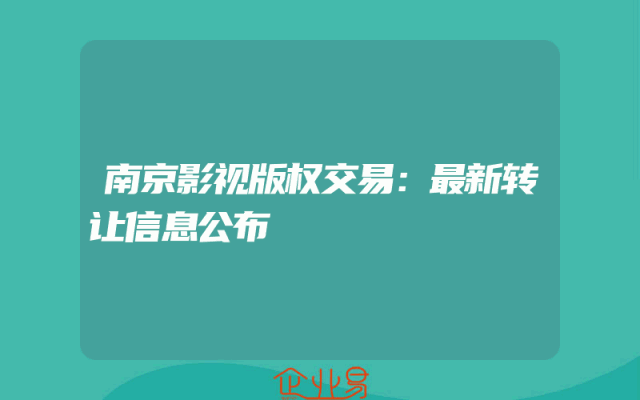 - 南京影视版权交易:最新转让信息公布一、南京影视版权交易市场概况南京,一座历史悠久且文化底蕴深厚的城市,近年来在影视版权交易方面取得了显著进展。作为全国重要的文化中心之一,南京影视版权交易市场日益活跃,不断推动文化产业的繁荣发展。最新的转让信