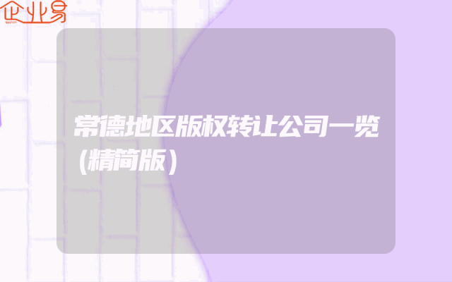 - 常德地区版权转让公司一览(精简版)一、版权转让概述在当今知识经济时代,版权转让已成为促进文化创意产业发展的重要手段。常德地区作为文化繁荣之地,涌现出了一批专业的版权转让公司,它们致力于保护版权所有者权益,推动优秀文化作品的传播和应用。二、主