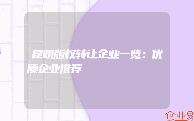 - 昆明版权转让企业一览:优质企业推荐一、昆明版权转让市场概况昆明作为云南省的省会城市,拥有得天独厚的地理和文化优势,版权转让市场日渐繁荣。众多企业投身于版权转让事业,为创作者和企业提供了丰富的版权资源。在这里,我们将介绍一些在昆明市场上表现突
