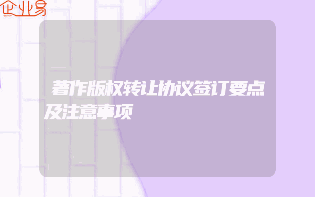 - 著作版权转让协议签订要点及注意事项一、著作版权转让协议签订要点在签订著作版权转让协议时,首先需要明确作品的名称、作者及双方的基本信息。协议中应详细列出作品类型、转让的权利种类以及地域范围。这是确保转让权利清晰的基础。同时,协议中必须