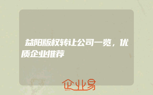 - 益阳版权转让公司一览,优质企业推荐