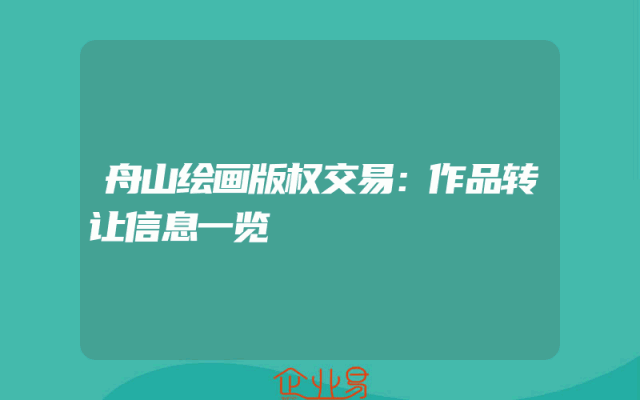 - 舟山绘画版权交易:作品转让信息一览