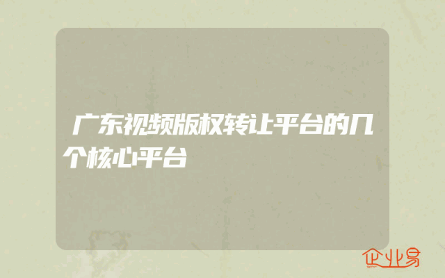 - 广东视频版权转让平台的几个核心平台