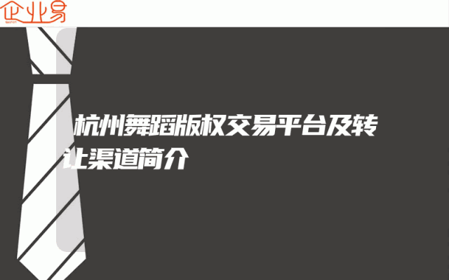 - 杭州舞蹈版权交易平台及转让渠道简介