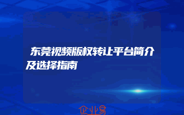 - 东莞视频版权转让平台简介及选择指南