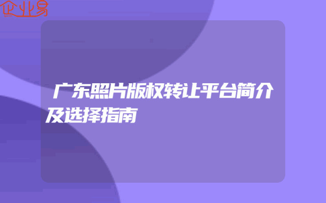 - 广东照片版权转让平台简介及选择指南