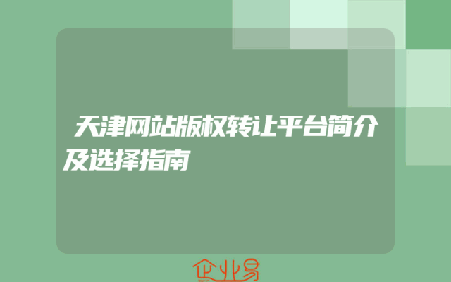 - 天津网站版权转让平台简介及选择指南