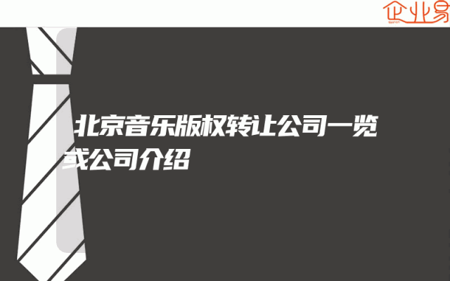 - 北京音乐版权转让公司一览或公司介绍