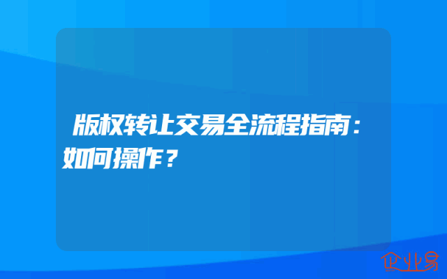 - 版权转让交易全流程指南:如何操作?