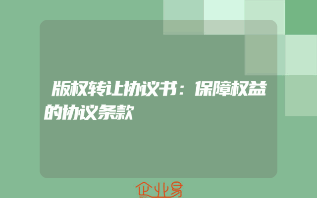 - 版权转让协议书:保障权益的协议条款