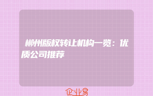 - 郴州版权转让机构一览:优质公司推荐