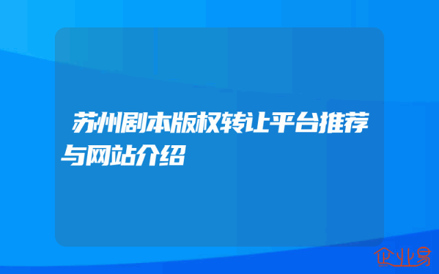 - 苏州剧本版权转让平台推荐与网站介绍