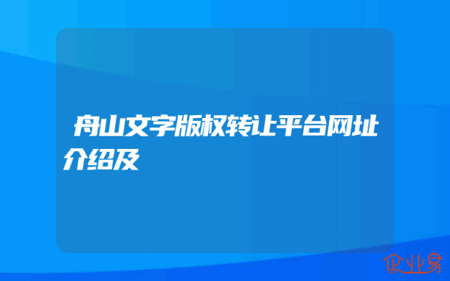 - 舟山文字版权转让平台网址介绍及