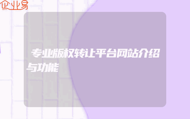 - 江苏省版权转让信息查询平台在线服务一、平台简介随着知识产权保护意识的加强,版权转让信息的透明化和公开化显得尤为重要。江苏省版权转让信息查询平台作为一个集查询、交易、服务于一体的在线服务平台,致力于提供高效、便捷的版权转让信息查询服务,有效促