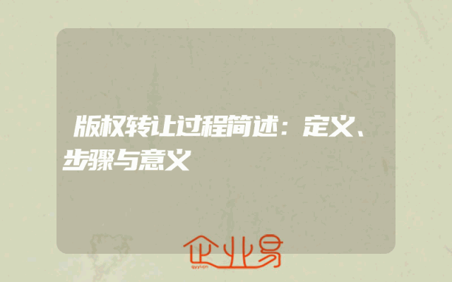 - 版权转让过程简述:定义、步骤与意义一、版权转让的定义版权转让是指知识产权所有者将其著作、作品或其他创造性成果的法律权利,通过一定的程序和方式,转移给另一方的过程。这种转让可以是部分权利转让,也可以是全部权利转让,涉及的范围包括文学、艺术、科