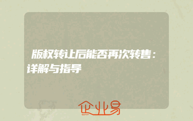 - 版权转让后能否再次转售:详解与指导一、版权转让的基本概念版权转让是指版权所有者将其拥有的作品版权的一部分或全部权利,按照法定的程序和规则,转移给另一方所有或使用的行为。一旦完成版权转让,受让方将获得版权的使用权或所有权,而原版权所有者则将失