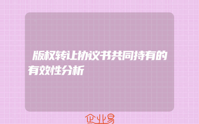 - 版权转让协议书共同持有的有效性分析在现代社会,知识产权的保护和利用越来越受重视,版权转让是其中一个重要的环节。而在共同持有版权的情况下,版权转让协议的有效性变得尤为重要和复杂。本文将针对共同持有