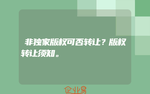 - 非独家版权可否转让?版权转让须知。