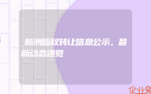 - 新洲版权转让信息公示,最新动态速览