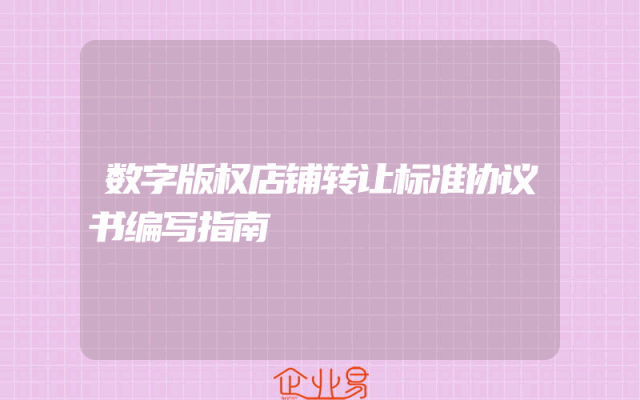 - 数字版权店铺转让标准协议书编写指南一、前言随着数字时代的快速发展,网络知识产权的保护与转让日益受到重视。数字版权店铺的转让,涉及版权、商标、商业秘密等多方面的法律问题,因此编写一份完善的转让标准协议书显得尤为重要。本文将详细阐述数字版权店铺