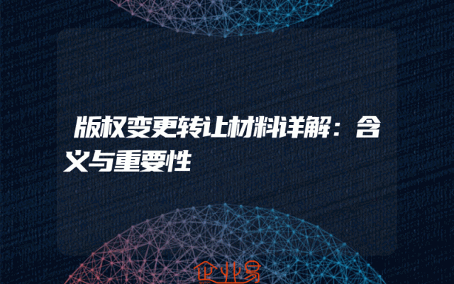 - 版权变更转让材料详解:含义与重要性一、版权变更与转让材料的基本概念在知识产权领域,版权变更和转让是常见的操作。版权变更主要是指版权所有权主体发生变化,包括所有权归属的转移或权利内容的变更。而版权转让则是指版权所有者将其部分或全部权利授权给他