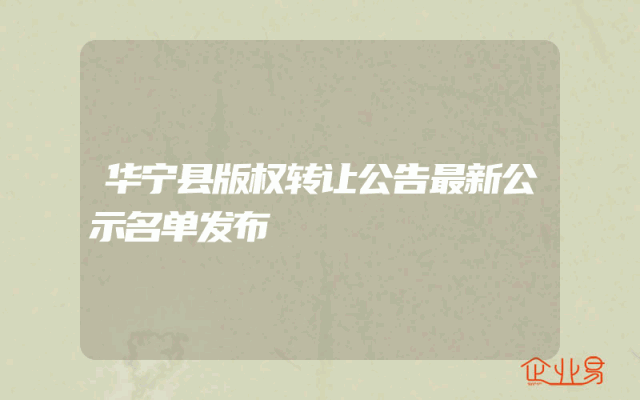- 华宁县版权转让公告最新公示名单发布一、公告背景及目的随着知识产权保护意识的加强,版权转让活动日益频繁。为了加强版权管理,规范版权转让行为,华宁县近期发布了最新的版权转让公告公示名单。此举旨在维护版权所有人的合法权益,促进文化产业的健康发展。