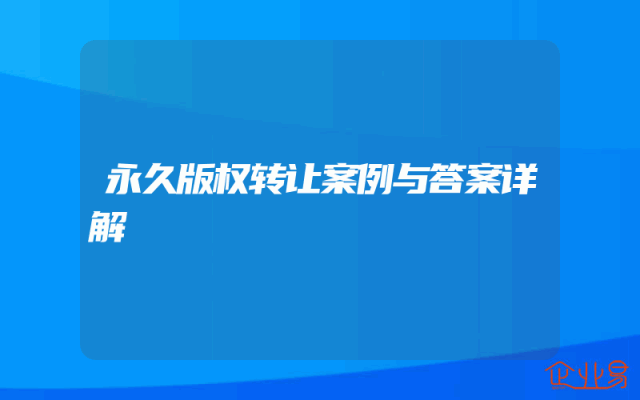 - 永久版权转让案例解析与解析答案详解一、案例介绍随着知识产权领域的不断发展,版权转让成为了一种常见的商业模式。其中,永久版权转让是指版权所有人将其作品的所有权利一次性转让给另一方,自己不再拥有该作品的任何权利。下面我们将介绍一起典型的永久版权