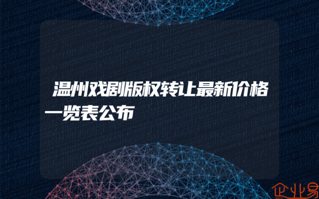 - 温州戏剧版权转让最新价格一览表公布