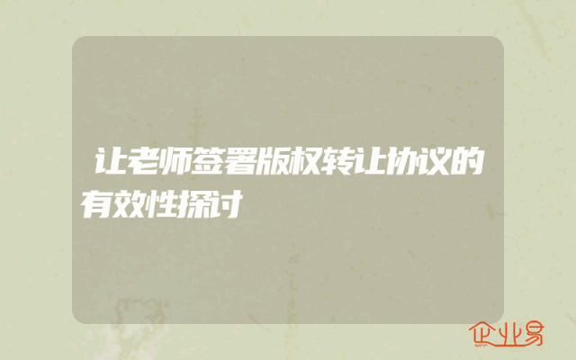 - 让老师签署版权转让协议的有效性探讨