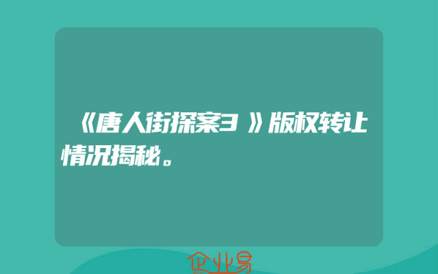 - 《唐人街探案3》版权转让情况揭秘。