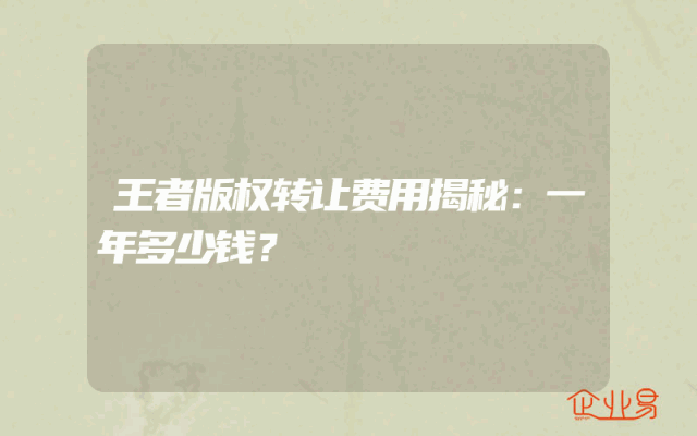 - 王者版权转让费用揭秘:一年多少钱?一、版权转让费用的构成当我们谈论王者版权转让费用时,首先需要了解这一费用并非是一个固定的数值,而是由多个因素构成的。这其中最主要的因素包括作品类型、作品知名度、作者影响力以及市场需求等。对于王者这款游戏而言