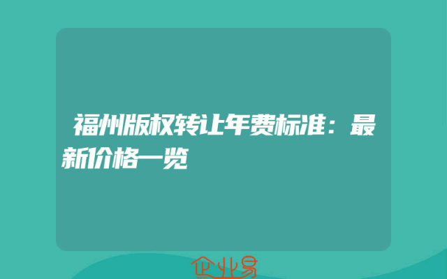 - 福州版权转让年费标准:最新价格一览一、引言随着知识产权保护意识的提高,版权转让活动日益频繁。福州作为福建省的省会城市,其版权交易市场也逐渐繁荣。对于涉及版权转让的当事人来说,了解版权转让的年费标准至关重要。本文将详细介绍福州版权转让的年费标