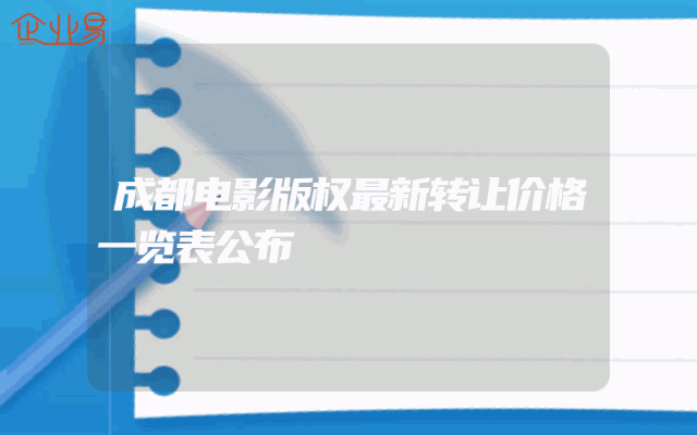 - 成都电影版权最新转让价格一览表公布一、引言随着电影产业的迅速发展,电影版权转让成为了行业内的重要交易之一。作为文化产业的枢纽城市,成都的电影版权交易市场日益活跃。本文将为大家揭示成都电影版权的最新转让价格,并探讨相关的市场动态和影响因素。二