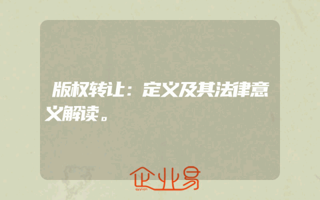 - 株洲版权转让:条件与费用标准解析一、株洲版权转让的背景及重要性株洲,作为文化与创新的重要基地,频繁发生的版权转让活动,已经成为推动地区文化产业发展的关键环节。版权转让不仅是权利人的权益体现,更是文化成果转化的重要途径。了解版权转让的条件与费