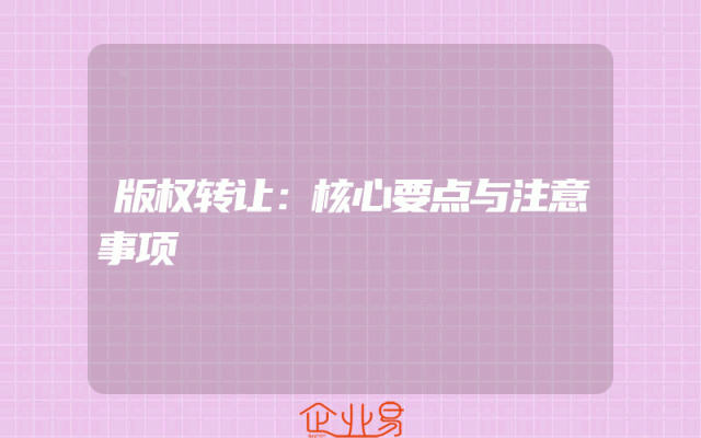 - 版权转让:核心要点与注意事项解析一、版权转让的核心要点在版权转让过程中,核心要点主要包括明确转让的标的、转让的范围和期限、转让的报酬以及双方的权益保障。首先,转让的标的需要具体明确,包括作品名称、类型、创作时间等详细信息,确保转让的版权是真