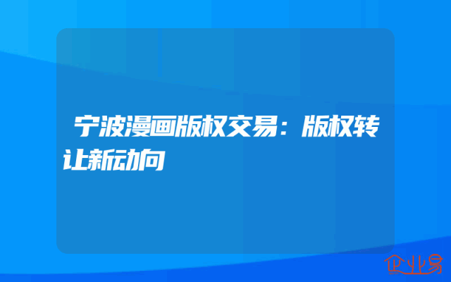 - 宁波漫画版权交易:版权转让新动向