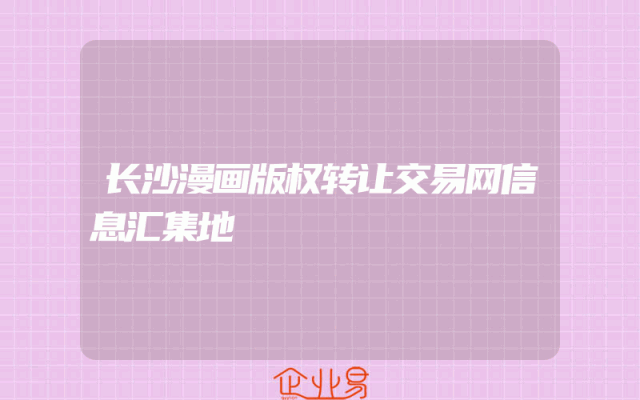 - 长沙漫画版权转让交易网信息汇集地