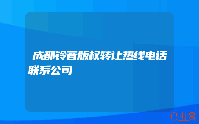 - 成都铃音版权转让热线电话联系公司一、引言随着音乐产业的不断发展,版权问题日益受到重视。作为四川省成都市一家专注于音乐版权转让的公司,我们致力于为广大音乐爱好者和从业者提供一个安全、便捷、高效的版权转让平台。如果您有关于版权转让的需求,不妨拨