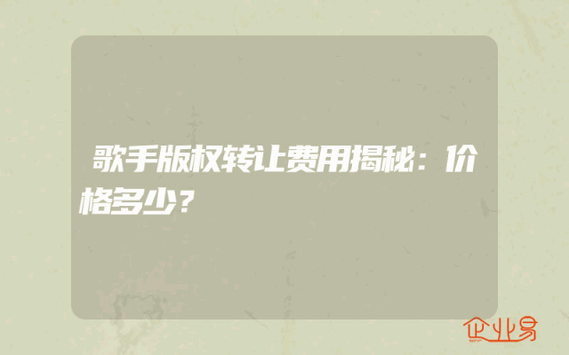 - 歌手版权转让费用揭秘:价格多少?一、版权转让费用的概述随着音乐产业的繁荣发展,歌手的版权日益受到重视。版权转让,是指版权所有者将其拥有的著作财产权让渡给他人使用的行为。而关于版权转让的费用,往往因多种因素而有所不同。本文将从多个角度阐述版权