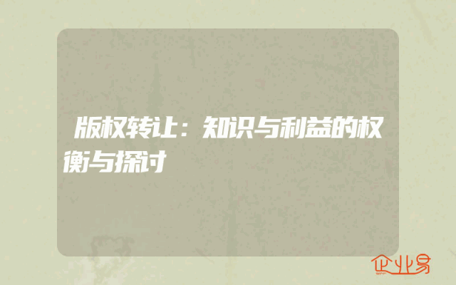 - 版权转让:知识与利益的权衡与探讨
