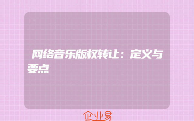 - 网络音乐版权转让:定义与要点解析一、网络音乐版权转让定义网络音乐版权转让指的是音乐版权所有者将其音乐作品的复制权、发行权、表演权、播放权、信息网络传播权等权利,通过法定的程序和手续,转让给另一方的行为。在数字化时代,随着网络音乐市场的繁荣发