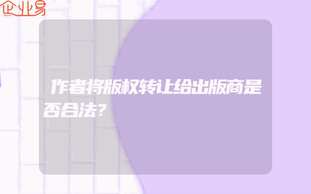 - 作者将版权转让给出版商是否合法?一、版权与版权转让的基本概念版权,又称为著作权,是指创作者对其创作的文学、艺术和科学作品所享有的专有权利。在中国,著作权法赋予创作者一系列权利,包括复制权、发行权、出租权、展览权、表演权等。版权转让,则是指版