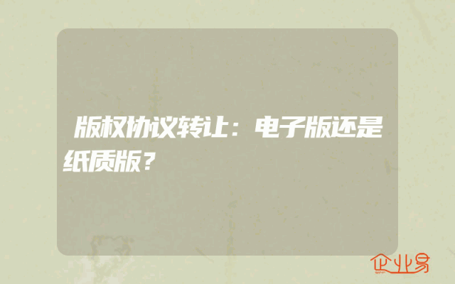 - 版权协议转让:电子版还是纸质版?一、引言在知识产权领域,版权协议转让是常见的法律行为。随着科技的进步,我们面临着一个重要问题:在进行版权协议转让时,应该选择电子版还是纸质版?本文将从多个角度阐述这一观点。二、电子版版权协议转让的优势首先,电