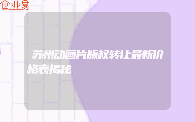- 苏州动画片版权转让最新价格表揭秘