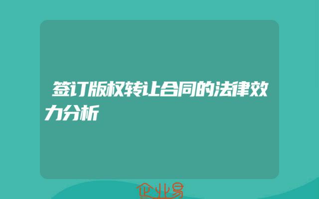 - 签订版权转让合同的法律效力分析