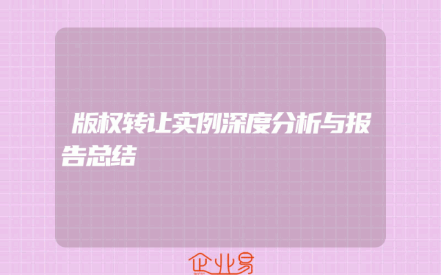 - 版权转让实例深度分析与报告总结在现代社会,知识产权的重要性日益凸显,版权转让作为知识产权领域的一个重要环节,也受到了广泛关注。本文将结合具体实例,对版权转让进行深入分析,并总结报告。一、版权转让实例概述近